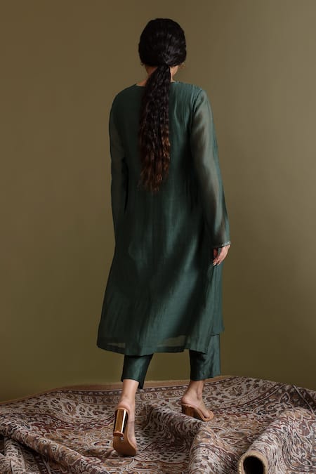 Buy_Chokhi Chorri_Green Cotton, Chanderi Zari, Embroidery, Sequins Keyhole Gathered Kurta Pant Set _Online_at_Aza_Fashions