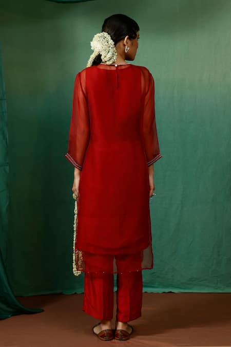 Buy_Chokhi Chorri_Red Inner Slip And Pant Silk Embroidered Sequin Kurta Manini Straight & Set _Online_at_Aza_Fashions