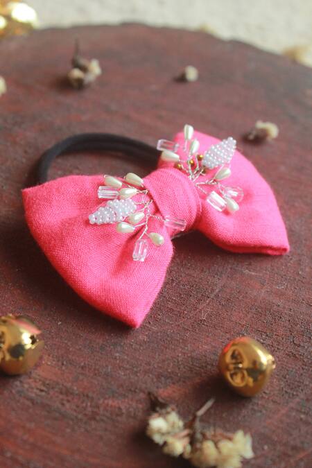 Buy_Choko_Pink Beads Bow Ornamented Hair Tie_at_Aza_Fashions