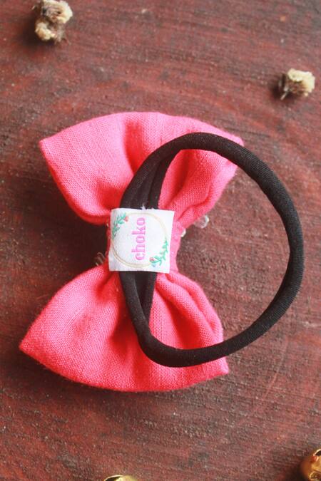 Buy_Choko_Pink Beads Bow Ornamented Hair Tie_Online_at_Aza_Fashions