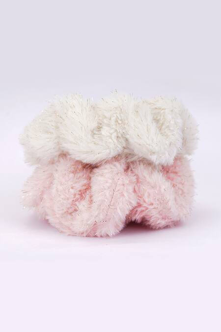 White, pink set of 2 scrunchie in shimmer fur fabric base.