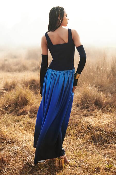 Blue ombre dress featuring a crystal stone embroidered waistband