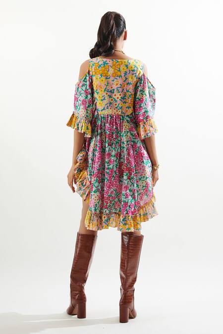 Buy_Cin Cin_Pink Cotton Embroidery, Mirrors Scoop Neck Ugaan Floral Print Kaftan