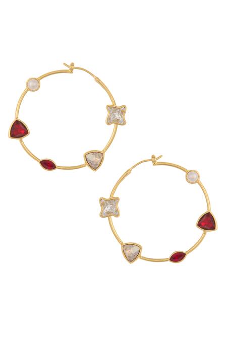 Shop_Confluence_Multi Color Swarovski Crystals Circular Hoops Earrings_at_Aza_Fashions