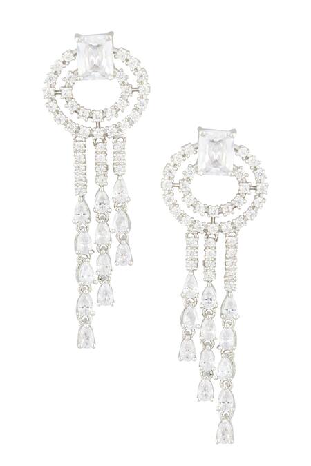 White finish circular pattern earrings featuring three layer danglers adorned with zircon embellishments