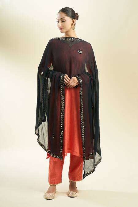 Intricate embellishments along the edges., Lightweight chiffon fabric for comfort.