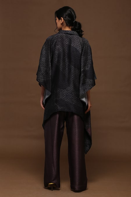 English walnut kaftan style kurta with abstract printed motifs and asymmetrical hem. Comes with printed pants.