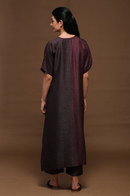 Brown Dupion Silk Geometric V Neck Printed Kurta And Pant Set