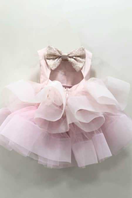 Bead and stone embellished collar, Layered tulle ruffles, Back concealed hook closure