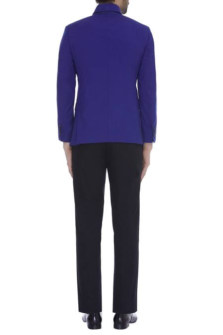 Upgrade your wedding wardrobe this wedding season, add this royal blue jacket with black blended micro wooven cupro trouser.