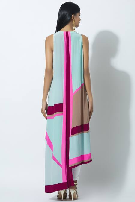 Buy_Manish Malhotra_Multi Color Crepe Colorblock Asymmetric Tunic_at_Aza_Fashions