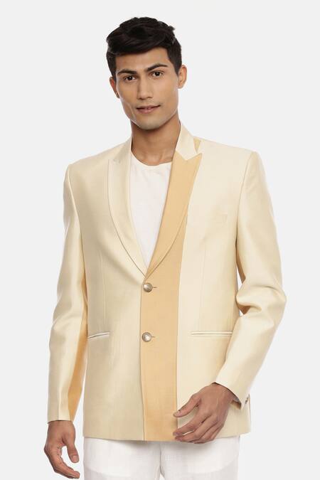 Gold Silk Cotton Colorblock Blazer
