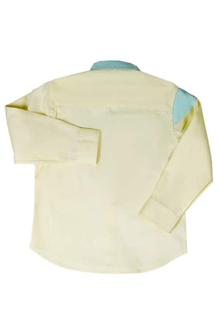 Yellow color block shirt featuring a stand fall collar and full sleeves