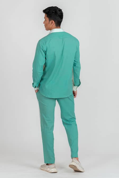 Blue Enzyme Washed Cotton Plain Colourblock Pant