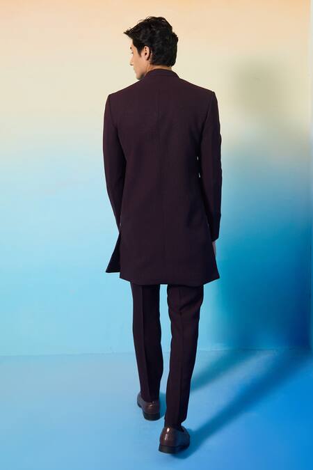 Wine Suede, Wool, Cotton Crystals Vega Textured Embellished Sherwani Set