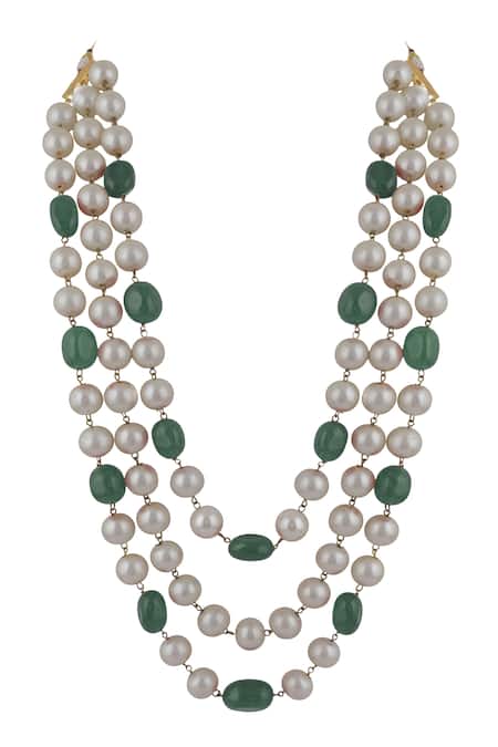 Buy_Riana Jewellery_White Contrast Multi-layered Mala _at_Aza_Fashions