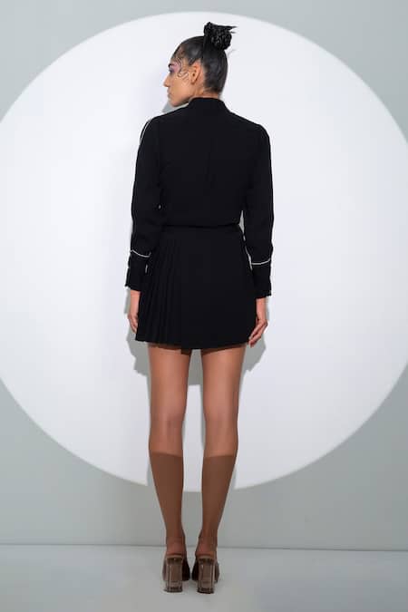 Black Viscose Collared Contrast Trim Shirt