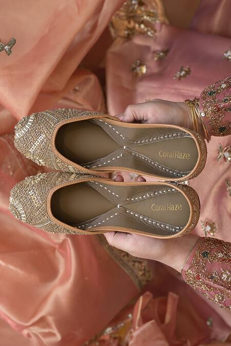 Buy_Coral Haze_Gold Aara Embellished Juttis