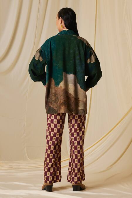 Multi Color Linen 60s Stamp Checks Print Pant