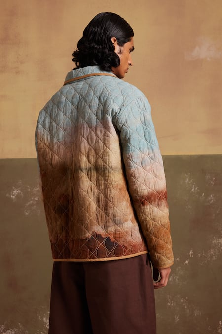 Multi Color Linen Blotch Print Quilted Jacket