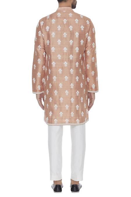 Pink Raw Silk Embroidered Floral Cord Kurta