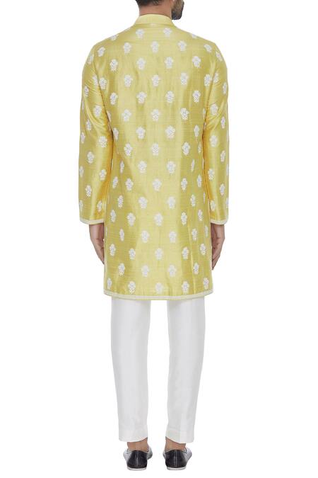Yellow Raw Silk Embroidered Floral Cord Kurta