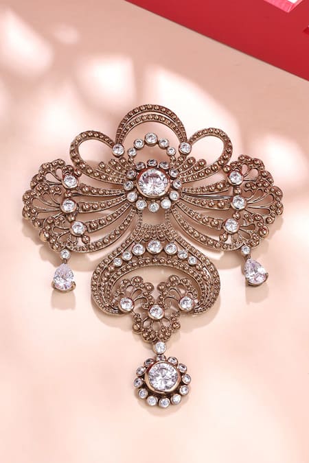 Shop_Cosa Nostraa_Gold Crystals Amaze Allure Embellished Brooch _Online_at_Aza_Fashions