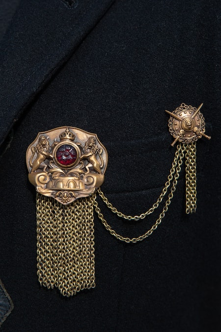 Multi-chain tassels, Carved detail, Lion & shield motif carvings, Size (in mm): 100 x 110}