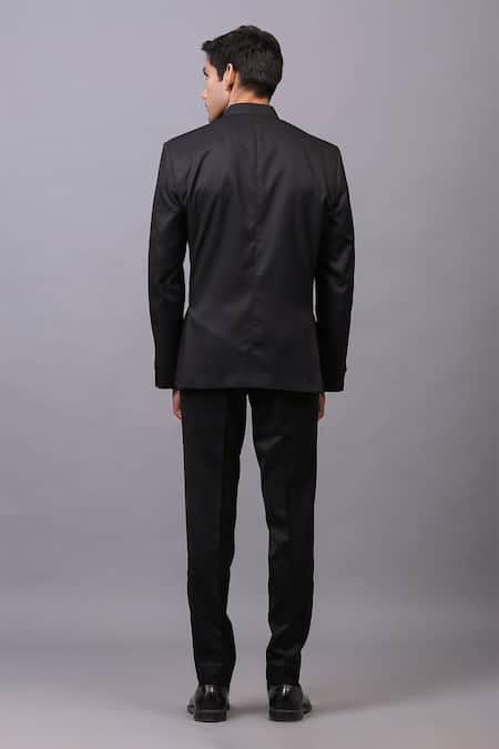 Black bandhgala highlighted with dagger embellishments, stylized placket & full sleeves.