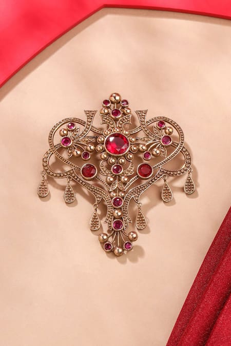 Buy_Cosa Nostraa_Gold Crystals Gemstone Embellished Brooch _Online_at_Aza_Fashions