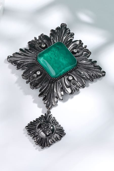 Grey Crystals Hazrat-e-ishq Carved Work Brooch