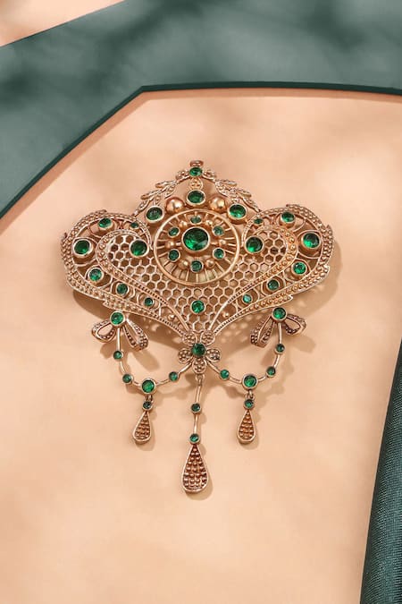 Shop_Cosa Nostraa_Gold Crystals, Rhinestones Intricate Delight Brooch _Online_at_Aza_Fashions