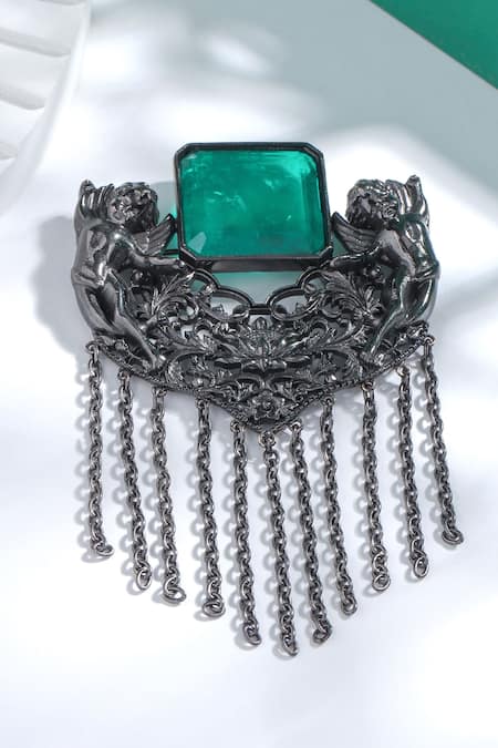 Buy_Cosa Nostraa_Grey Cut Work, Stones Jadui Naginey Carved Brooch _at_Aza_Fashions