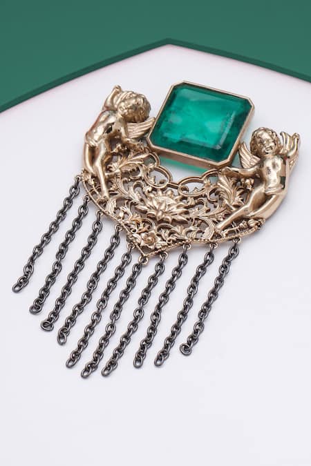 Buy_Cosa Nostraa_Gold Crystals, Chains Jadui Naginey Embellished Brooch _at_Aza_Fashions