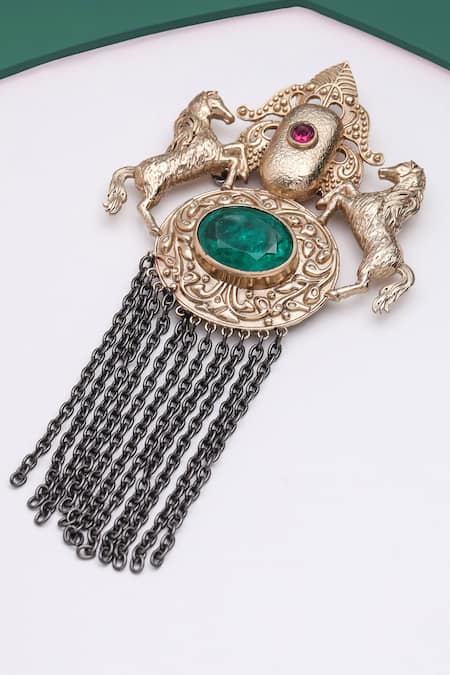 Buy_Cosa Nostraa_Gold Crystals, Chains Sawaar-e-noor Embellished Brooch _Online_at_Aza_Fashions