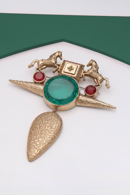 Gold Crystals, Stones Sawaar-e-shaan Embellished Brooch