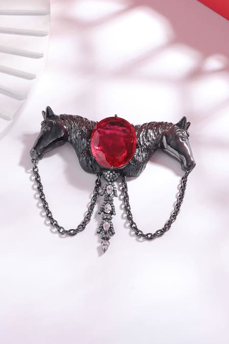 Buy_Cosa Nostraa_Grey Crystals, Chains Shaahi Sawaar Carved Work Brooch _Online_at_Aza_Fashions