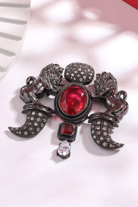 Buy_Cosa Nostraa_Gold Crystals Shehenshah-e-jungle Embellished Brooch _Online_at_Aza_Fashions