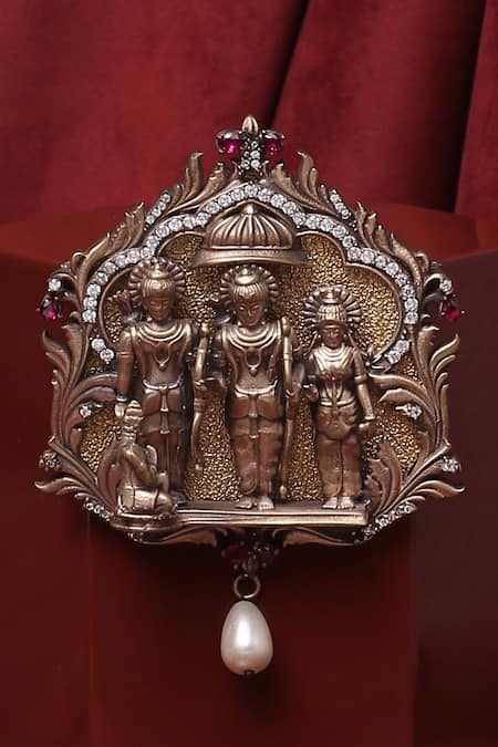 Buy_Cosa Nostraa_Gold Stones Temple Motif Antique Brooch _Online_at_Aza_Fashions