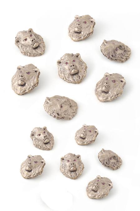 Set of 13 brass buttons crafted in Lion motifs with antique gold plating & lightweight.