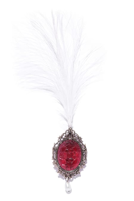 Carved border, Faux feather embellished, Size (in mm): Feather:265X75; Kalangi:75X45, Weight (in gms): 32.38, Note: Safa worn by the model is not for sale