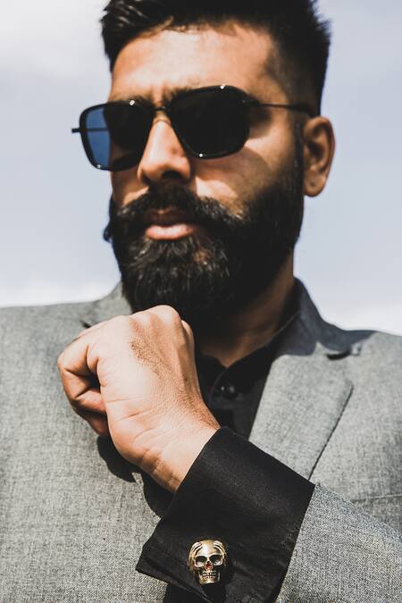 Gold Three Wise Skull Cufflink Brooch And Lapel Pin Set