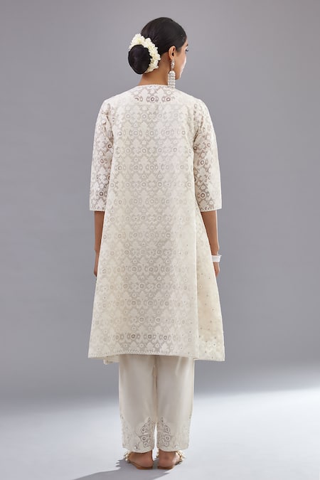 Buy_Kora_Off White Cotton Sequins, Tassels Split V-neck Chanderi Straight Kurta Pant Set _at_Aza_Fashions