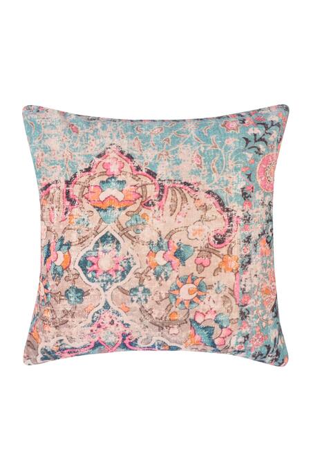 Multicolor rectangle shaped set of 2 cushion cover with mughal & floral digital print.
