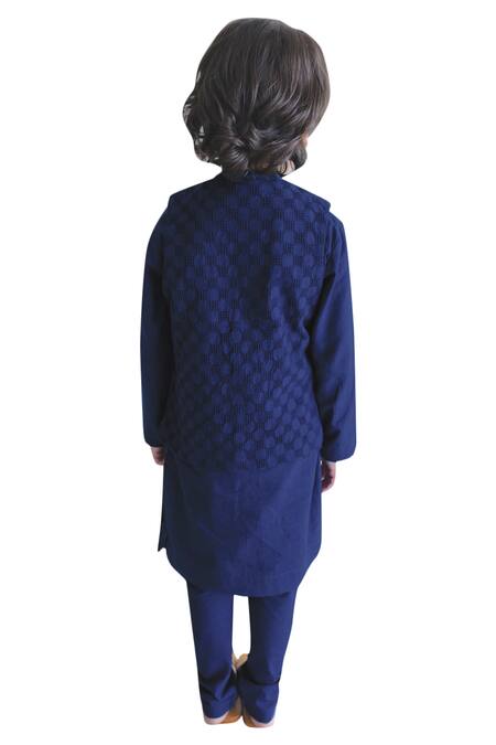 Buy_Tiber Taber_Blue Jacquard Cotton Kurta Bundi Set _Online_at_Aza_Fashions