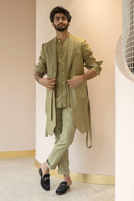 Green Cotton Linen Overcoat