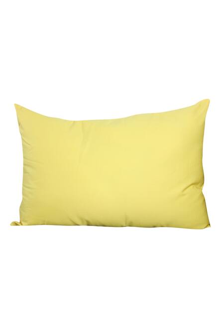 White set of 2 cushion with black felt stripes. Comes with set of 2 yellow plain cushion.