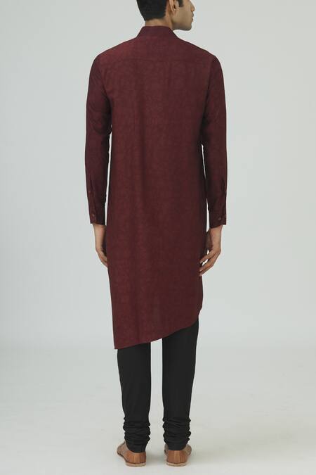 Port hued kurta with all over floral print motif. Comes with black churidar pants.