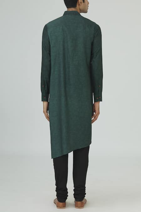 Forrest green kurta with all over floral print motif. Comes with black churidar pants.