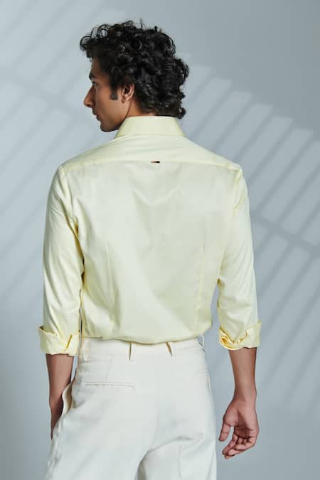 Soft yellow slim fit shirt with placement crest motif & collared neck.